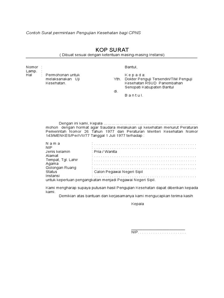 Atau lembaga yang membutuhkan surat kesehatan dengan format tertentu.